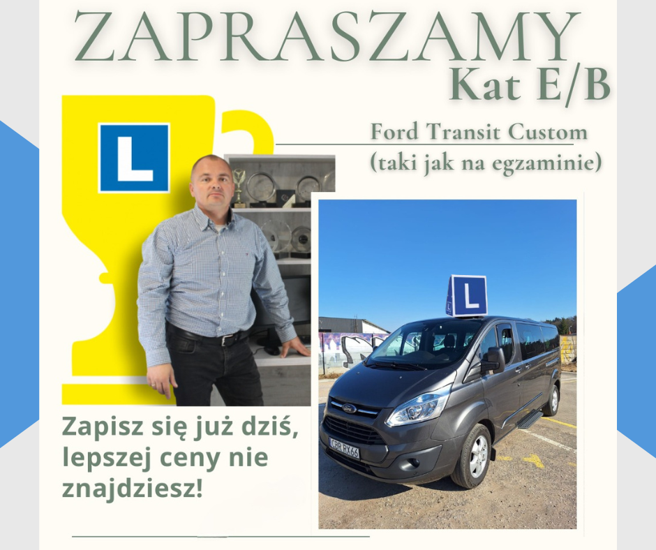 Kurs prawa jazdy kat.B/E 1900 zł Pojazd szkoleniowy - Ford Transit Custom (identyczny jak w Word Grudziadz ) TYLKO U NAS!!!