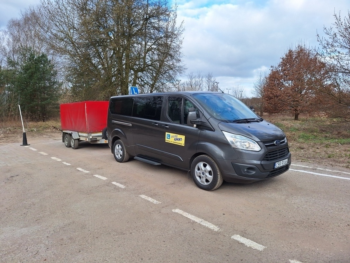 Kurs podstawowy: 0 godzin teorii i 15 godzin jazdy. Jazdy odbywają się na Ford Transit Custom z przyczepą NIEWIADÓW 1200BH jak na egzaminie państwowym w Grudziądzu.
