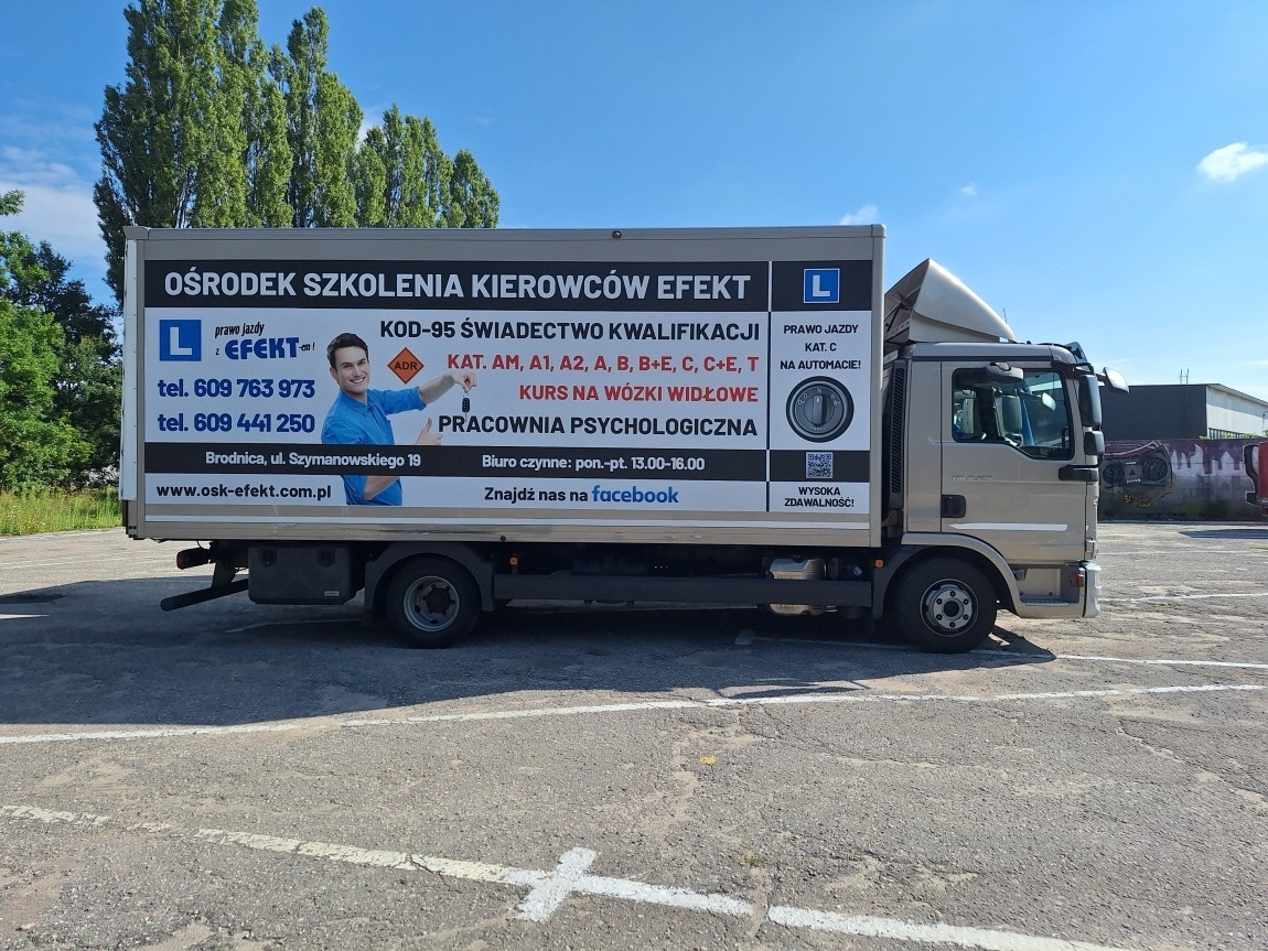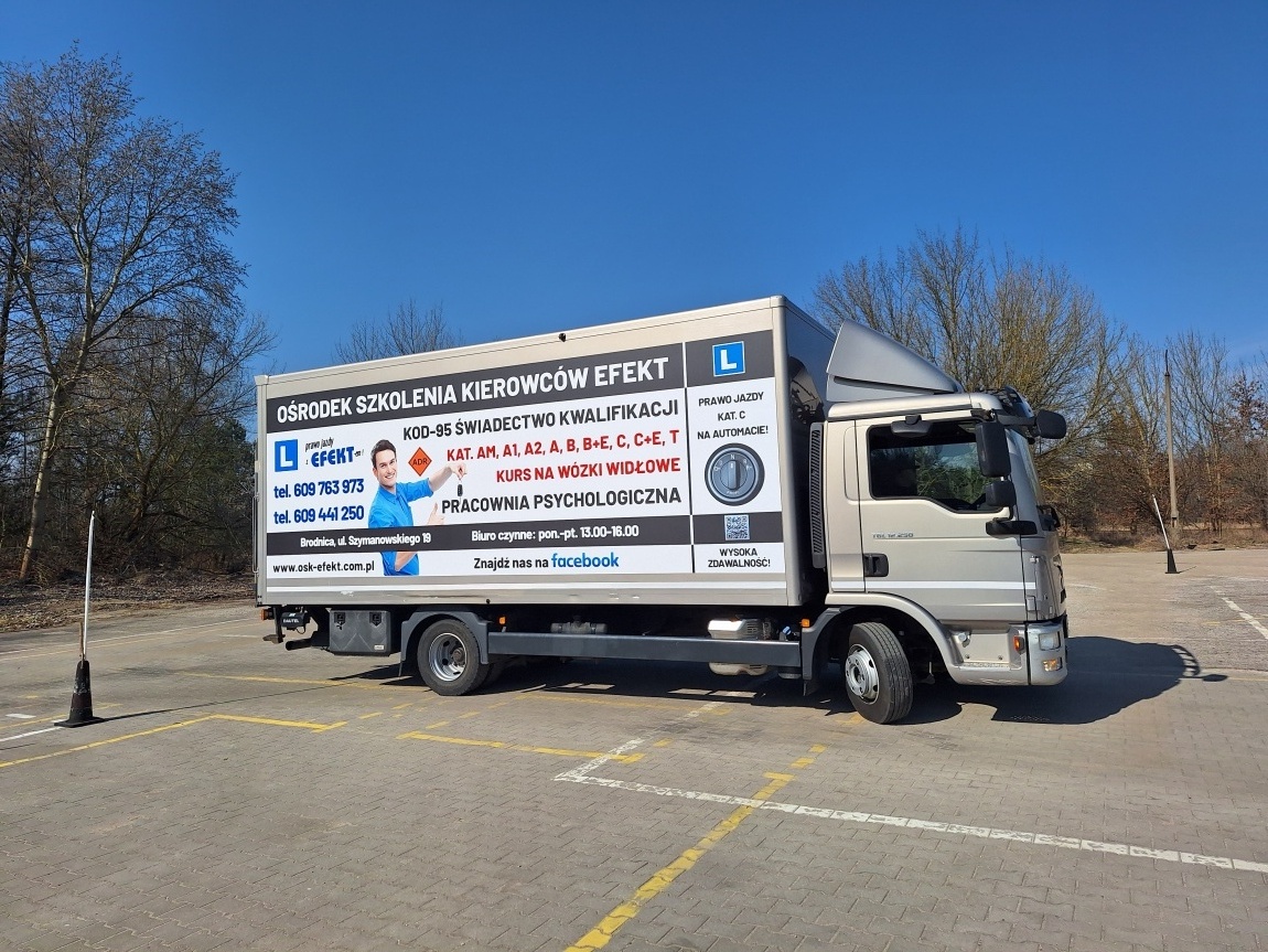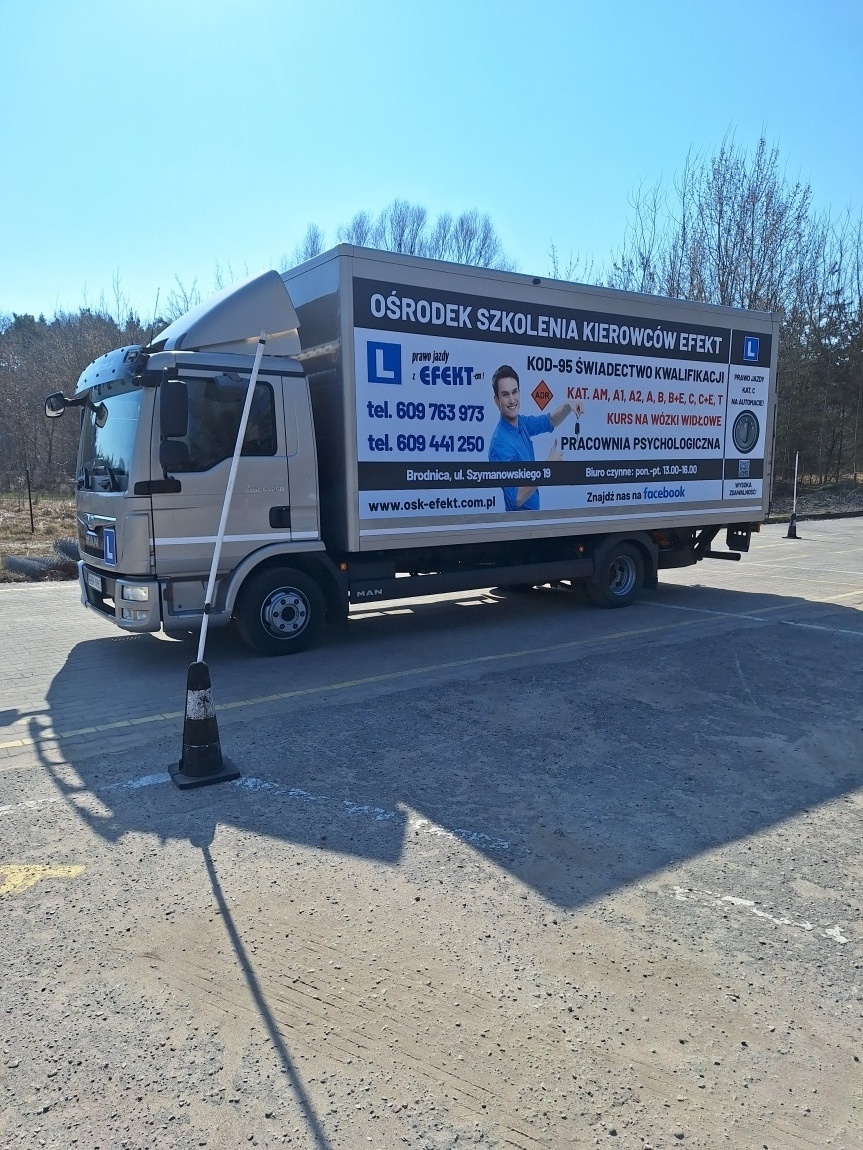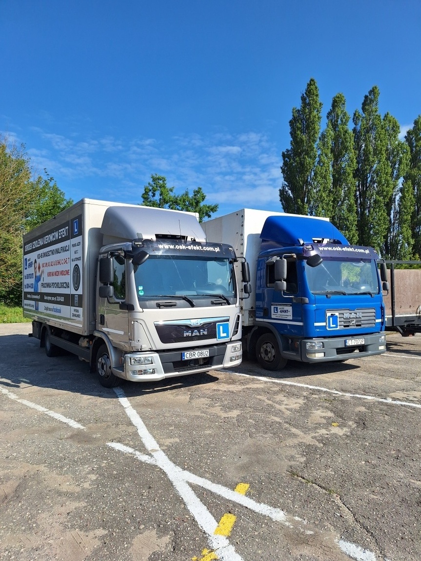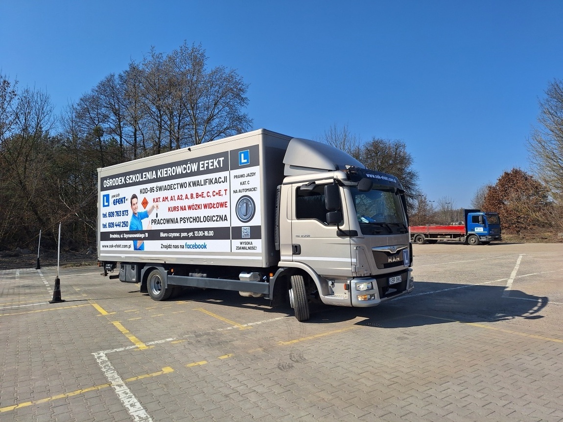 U nas kursant ma możliwość szkolenia się na MAN TGL 12.250 z automatyczną i manualna skrzynią biegów, pojazd jak na egzaminie państwowym w Grudziądzu ( identyczne wymiary jak w WORD, ten sam model).
